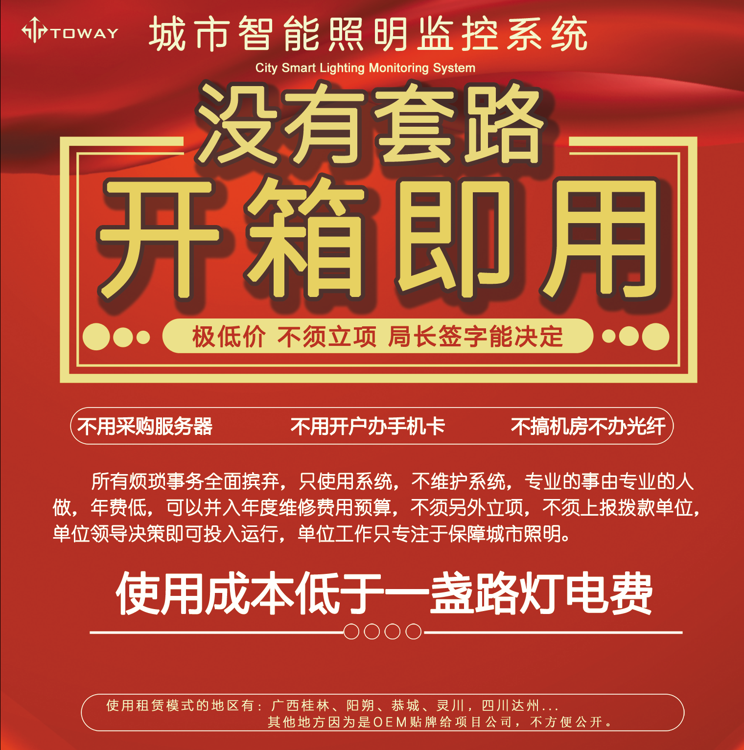 此方案對(duì)于一個(gè)縣城100臺(tái)路燈配電箱的體量,首年開(kāi)支也只有三萬(wàn)五千元,此后每年費(fèi)用是兩萬(wàn)五,本方案最大的優(yōu)點(diǎn)就是費(fèi)用低廉,這筆費(fèi)用完全可以并入年度維護(hù)撥款中核銷。且不會(huì)有設(shè)備過(guò)保要重新采購(gòu)的問(wèn)題出現(xiàn)。
